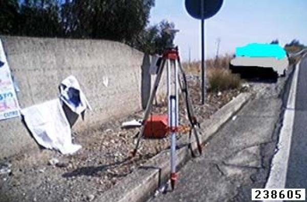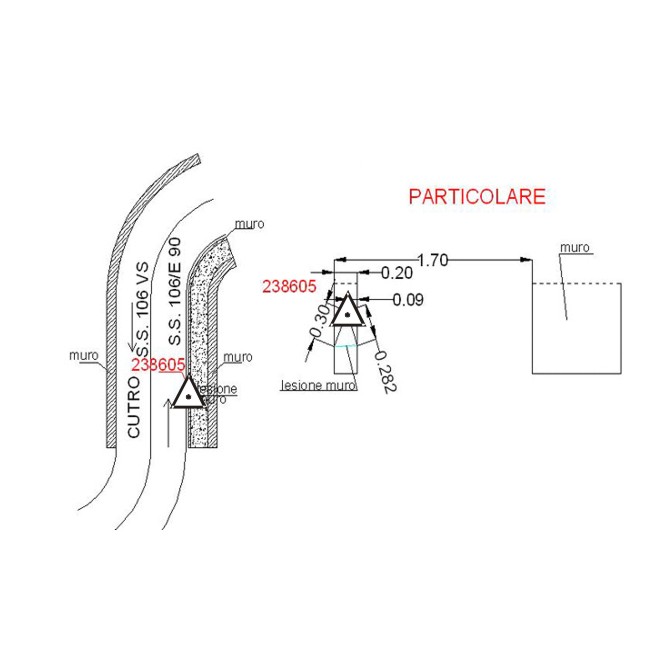 Centrino metallico infisso su muetto in calcestruzo a bordo strada.