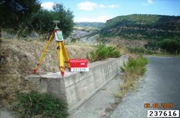 | materializzazione | Centrino metallico infisso su testa di muretto di contenimento in calcestruzzo a bordo strada. |
