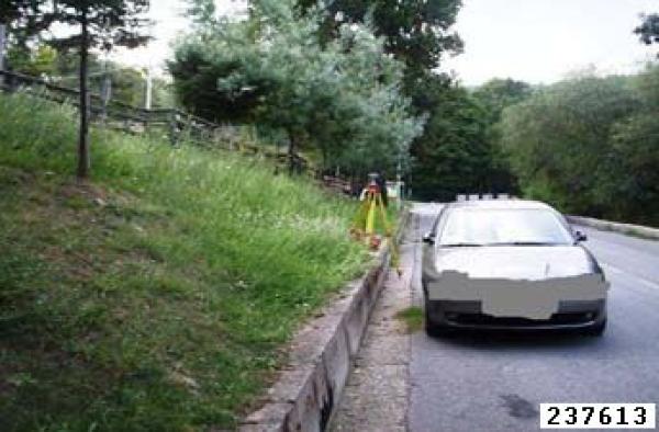 | materializzazione | Centrino metallico infisso su un muro di sostegno a bordo strada. |