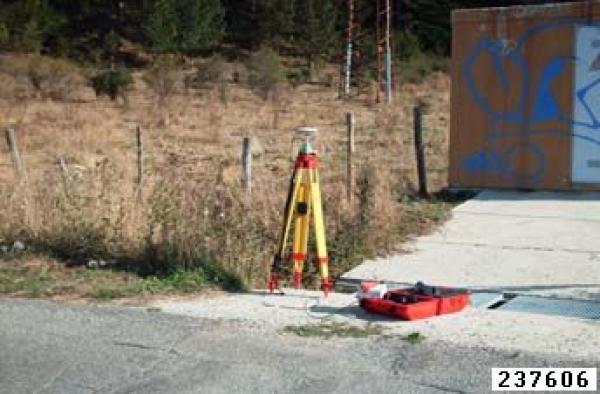 Centrino metallico infisso su base in cemento prospiciente grata in ferro, posta su canale di scolo di fronte a cabina ENEL.