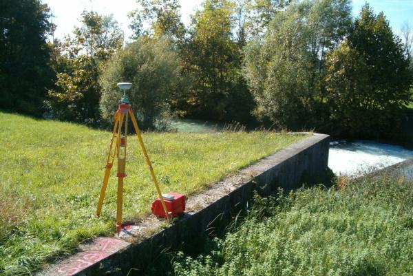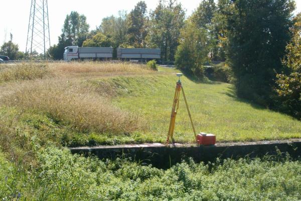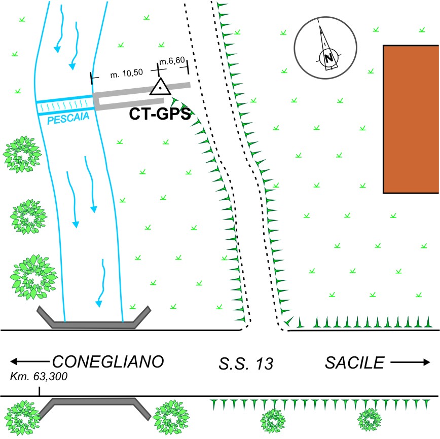 Centrino in acciaio inox del tipo "GPS C" infisso su di un muro di prolungamento della pescaia sul fiume Meschio, riva sinistra, posto alla distanza di m.6,60 dal centro della campestre e di m.10,50 dal bordo estremo del muro lato fiume.