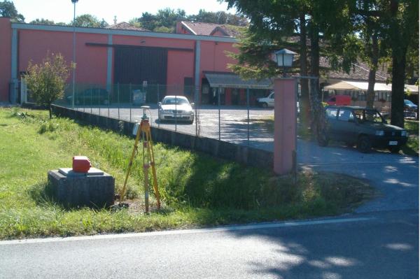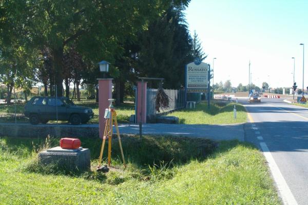 | materializzazione | Centrino universale infisso sul basamento del tombino dell'acquedotto posto a sinistra dell'ingresso all'Azienda Agricola Rossato, sullo spigolo Sud-Ovest. |