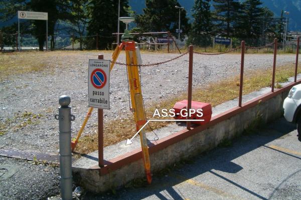 Centrino in acciaio inox del tipo "GPS D", infisso sul di un cordolo interno che delimita il parcheggio auto con la proprietà della Ferrovie dello Stato.