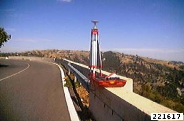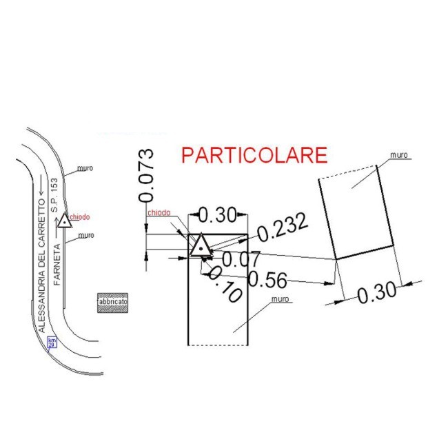 Centrino metallico infisso su muro in calcestruzzo a bordo strada.