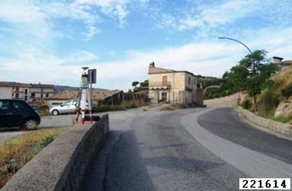 Centrino metallico infisso su un muretto paracarro in calcestruzzo a bordo strada.