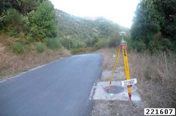 Centrino metallico infisso su testa pozzetto in calcestruzzo adiacente la strada.