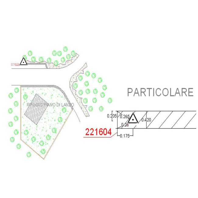 | materializzazione | Centrino metallico infisso su muro di sostegno di fronte al Rifugio Piano di Lanzo. |