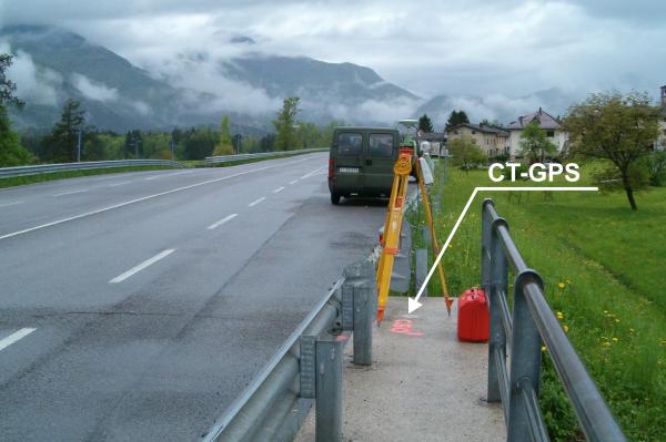 Centrino in acciaio inox del tipo universale, infisso sul marciapiede in cemento che corre lungo il ponte dul torrente Degano, a destra in direzione Socchieve.