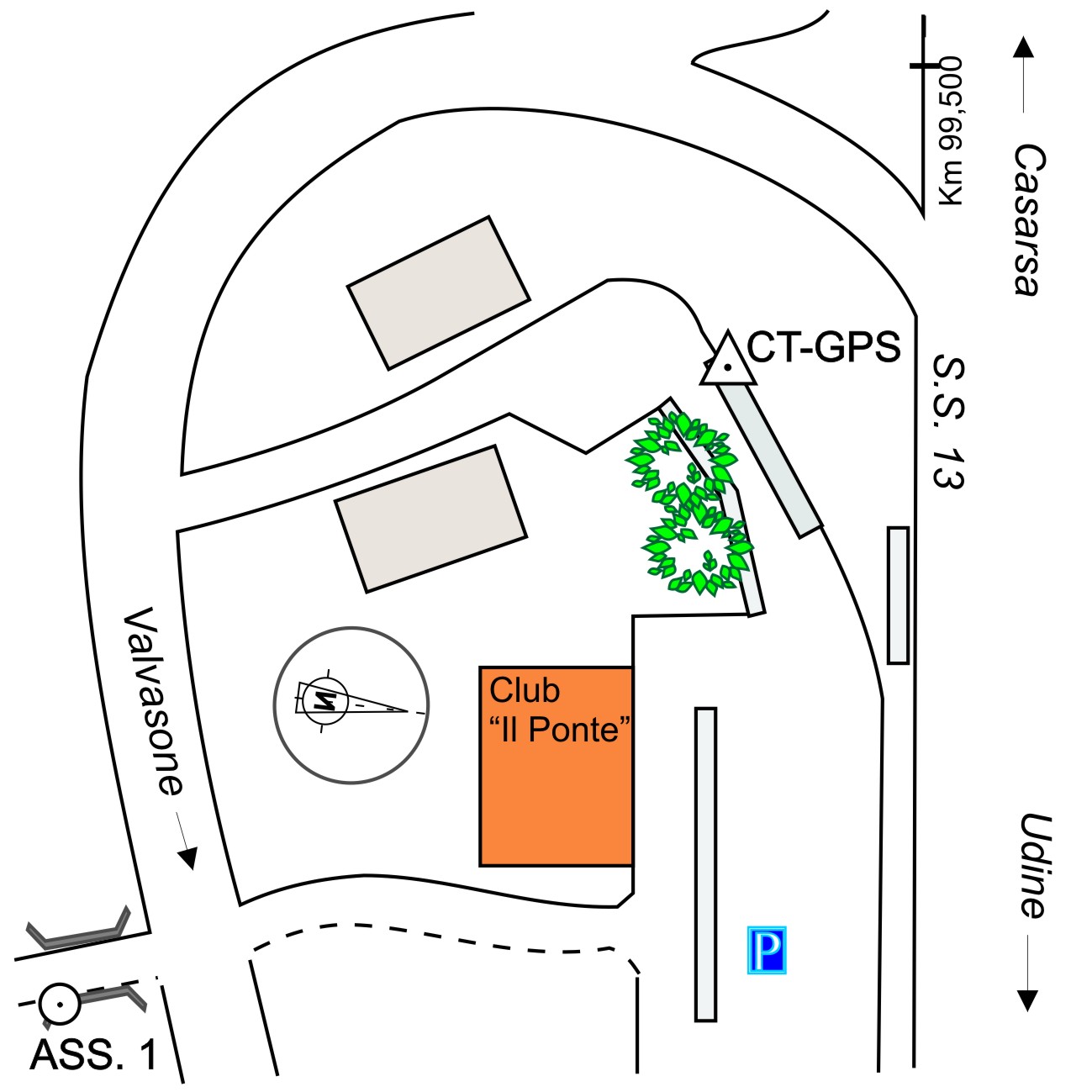 | materializzazione | Centrino GPS del "tipo D" infisso sulla sommità della spalletta sinistra del ponticello della stradina sterrata situata a destra dello svincolo per Valvasone, 50 m prima del sottopasso della S.S. 13. |