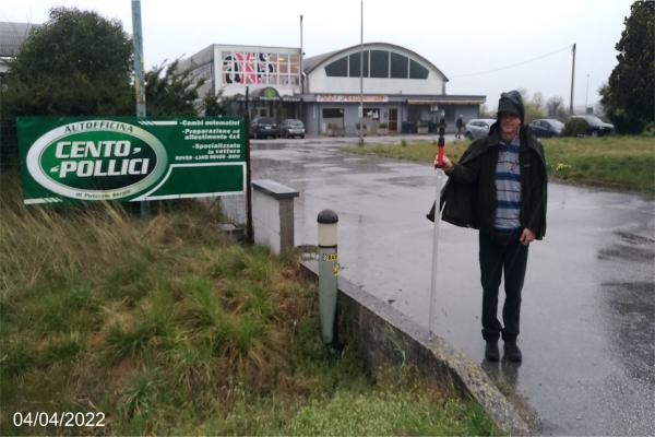 Centrino universale Inox infisso sulla testata sinistra del ponticello a sinistra dell'accesso all'area delle attività commerciali.