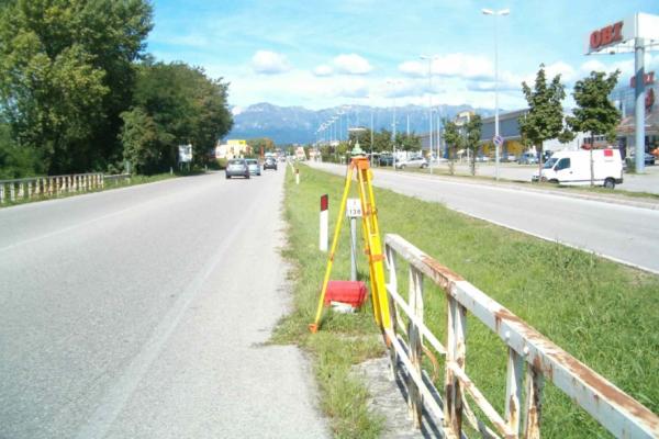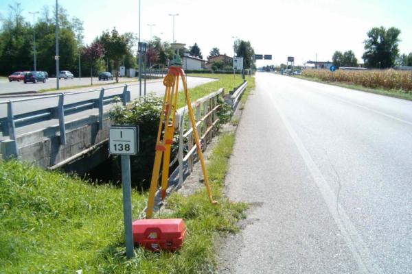 | materializzazione | Centrino Inox del tipo "GPS da livellazione" infisso sulla sommità del solettone di cemento del ponticello, a destra della S.S. 13, in direzione Carnia, a 1,10 m dal parapetto ed a 0,40 m dall'esterno del solettone. |