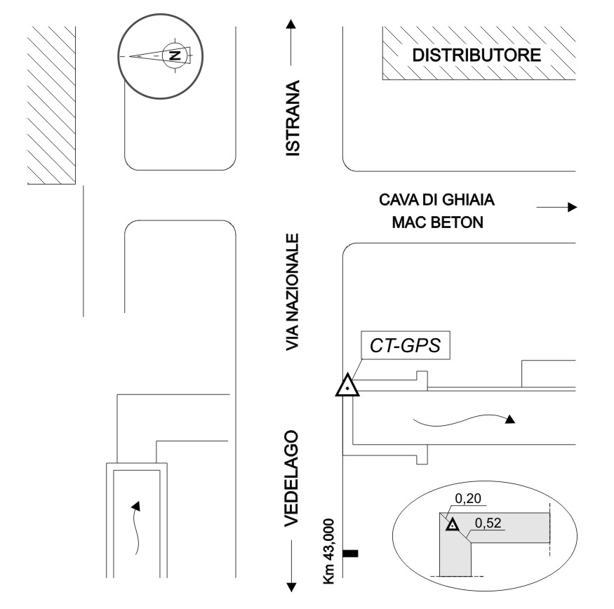 | materializzazione | Chiodo GPS della Regione Veneto con foro centrale infisso sul basamento in cemento del manufatto, in cemento armato, per lo scolo delle acque. |