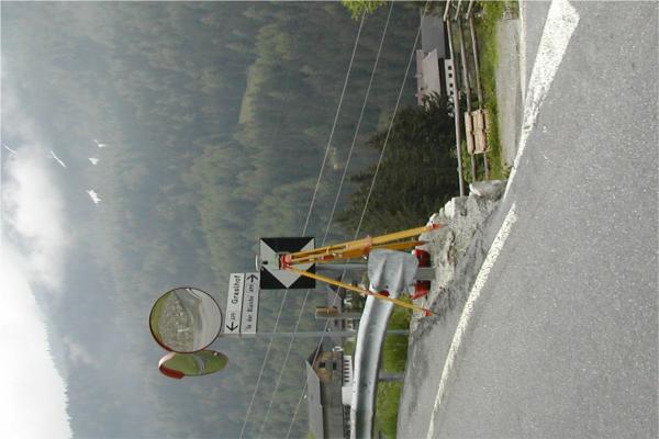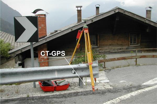 Centrino in acciaio del tipo "GPS" da livellazione, infisso sul muro in cemento del guard rail.