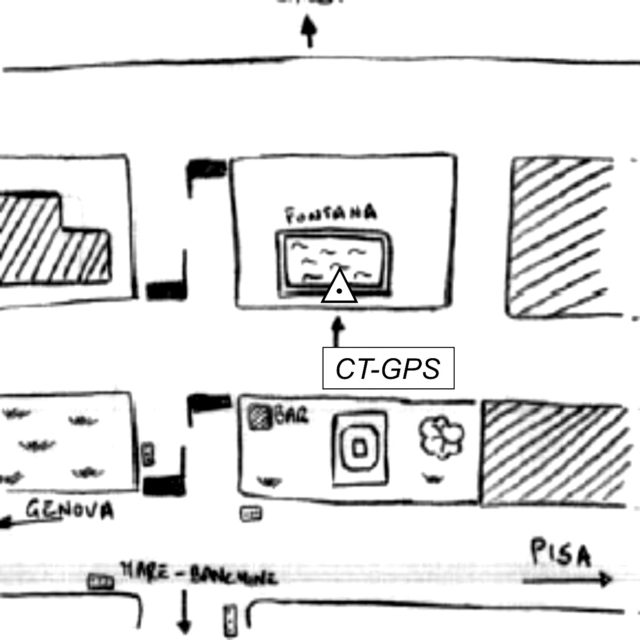 | Materializzazione | Centrino metallico infisso sul bordo della vasca in Piazza Europa, di fronte alla Questura. |