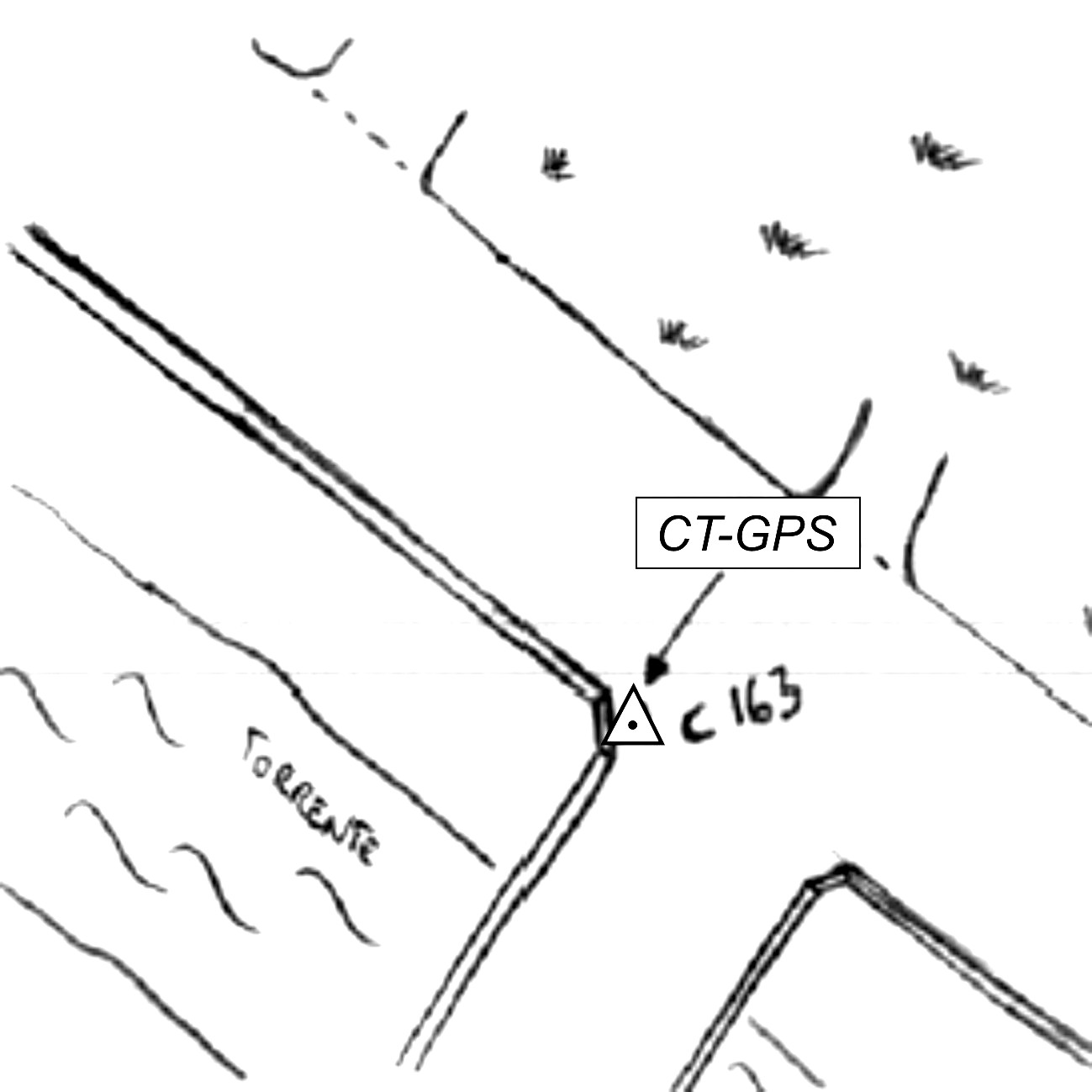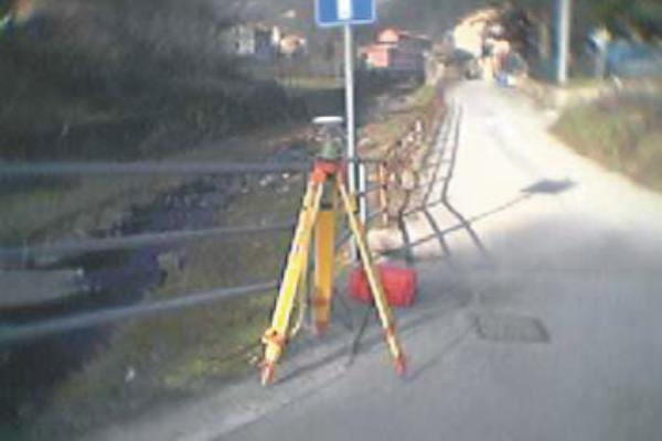 Centrino metallico infisso su muro di sostegno dell'argine sinistro del torrente, in prissimità dell'attacco della trave del ponte.