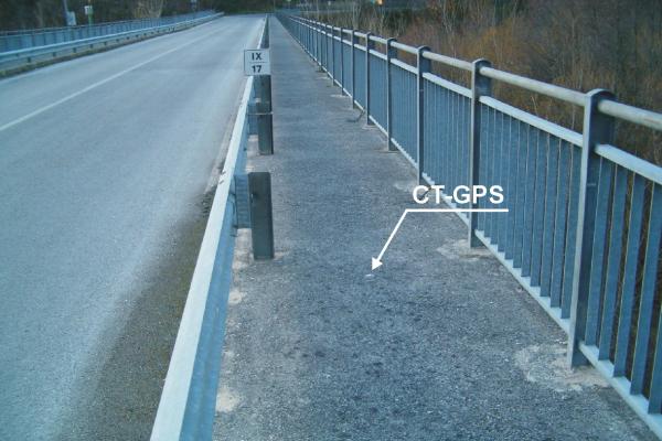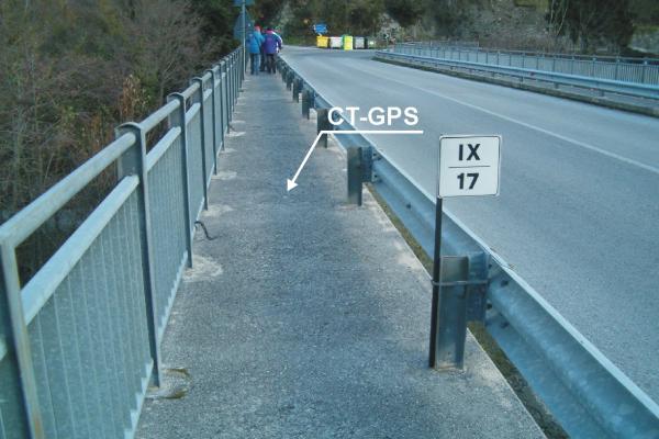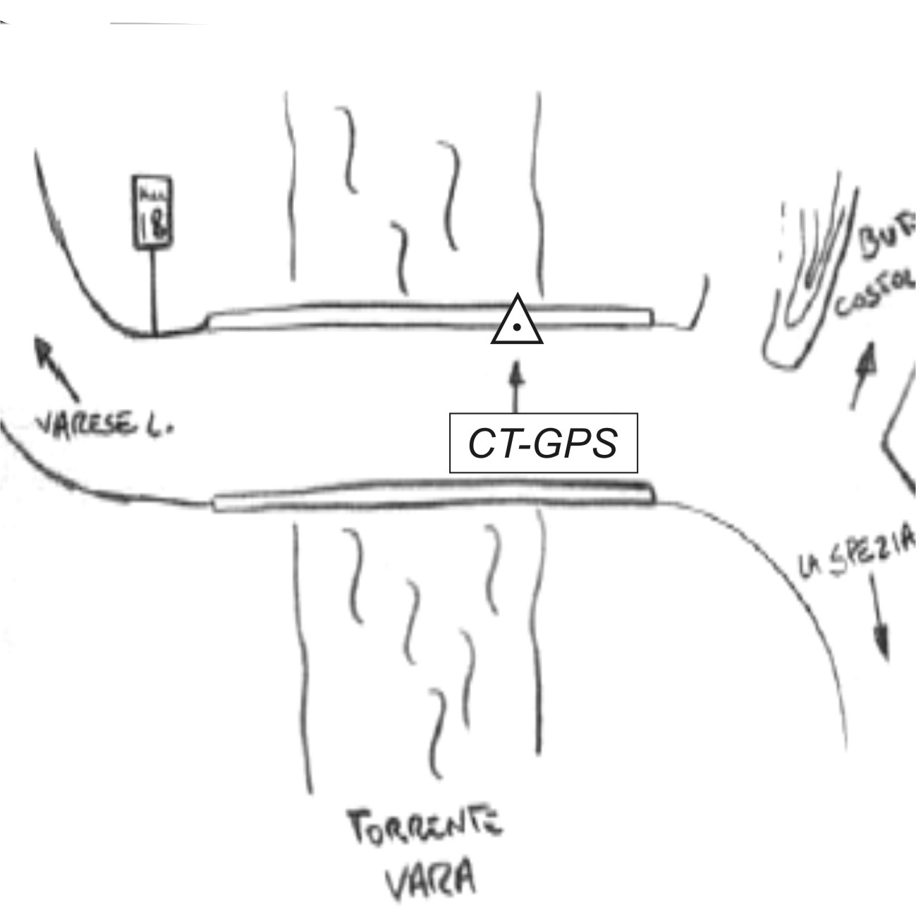 Centrino metallico infisso nel marciapiede del ponte sul fiume Vara, in corrispondenza con il secondo pilone sinistro, al Km 17,1.