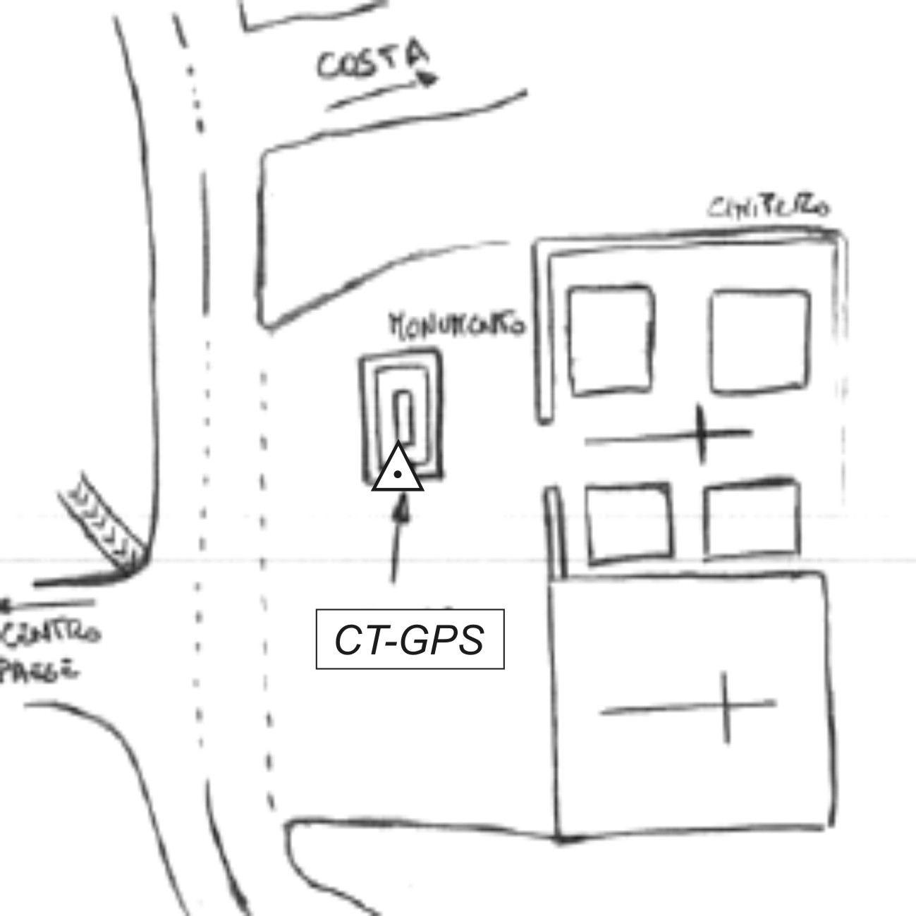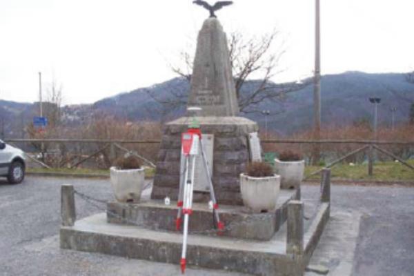 Centrino metallico infisso sul gradino frontale del monumento ai caduti, nella piazza del cimitero del paese.