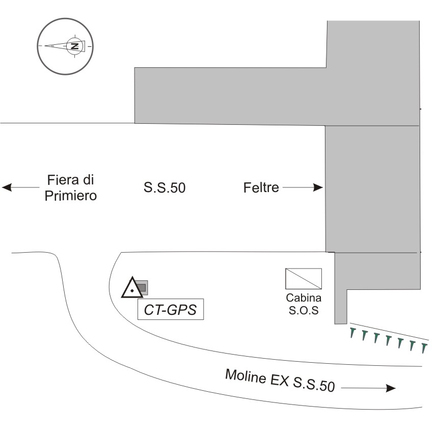 | materializzazione | Centrino in acciaio inox del tipo universale, infisso in prossimità dello spigolo di un tombino posto nell'aiuola spartitraffico fra la nuova S.S. 50 e la vecchia. |