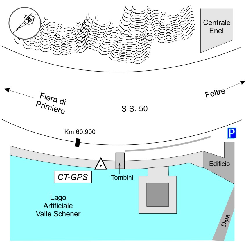 | materializzazione | Centrino in acciaio inox del tipo universale, infisso sul muraglione in cemento armato della diga ed a circa 9 mt dal segnale ettometrico. |