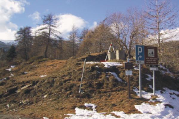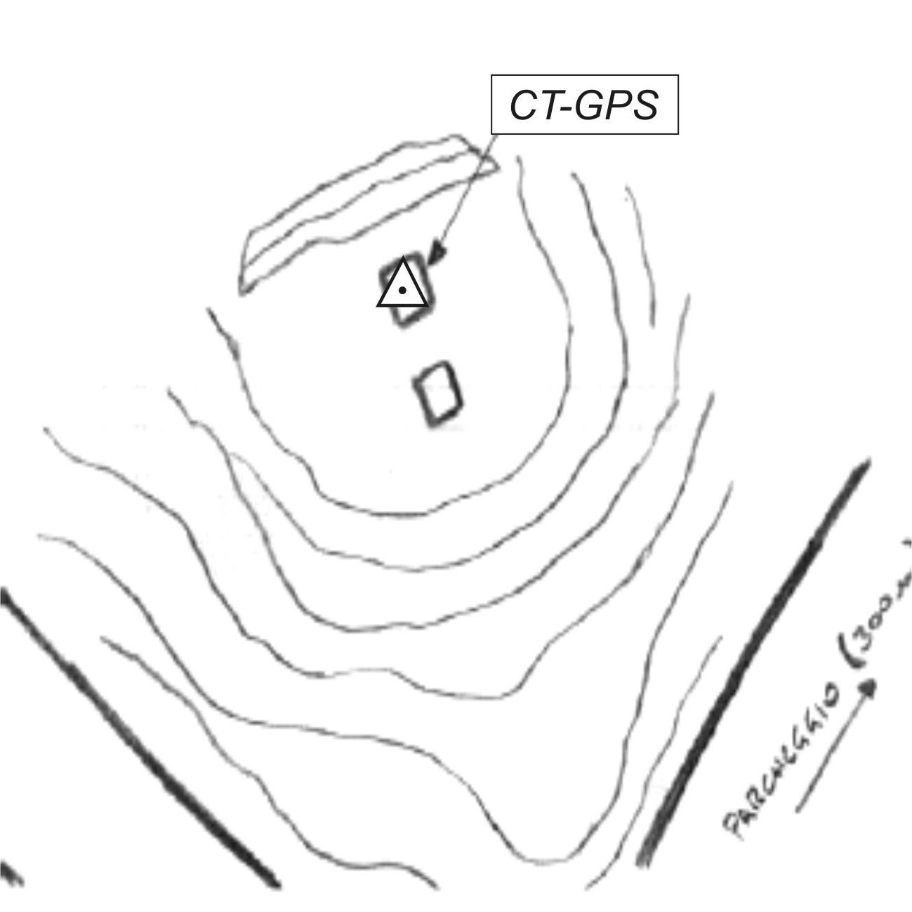 Centrino metallico infisso sulla sommità del pilastrino in cemento armato in corrispondenza di un caposaldo della rete GPS del Catasto.