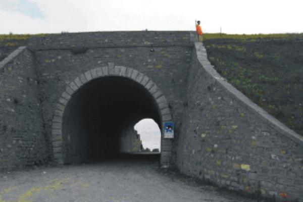 Centrino metallico infisso sulla sommità della spalletta destra della galleria su manufatto in calcestruzzo e pietrame.