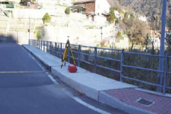 Centrino metallico infisso sulla testa del ponte, sponda destra lato valle, in località Madonna della Neve.