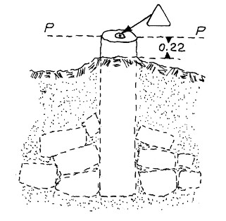 Chiodo con rondella da 35 mm. al centro di un tronco infisso sul terreno in località omonima.