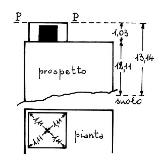 | Materializzazione | Asse geometrico del casotto posto sulla torretta della casa padronale della fattoria omonima. Chiodo con rondella da 35 mm. infisso sul solaio del casotto. |