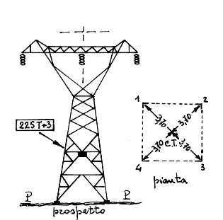 | Materializzazione | Traliccio della linea ad alta tensione, contrassegnato con il n. 225 T + 3 sito in località omonima. Asse geometrico del traliccio. |