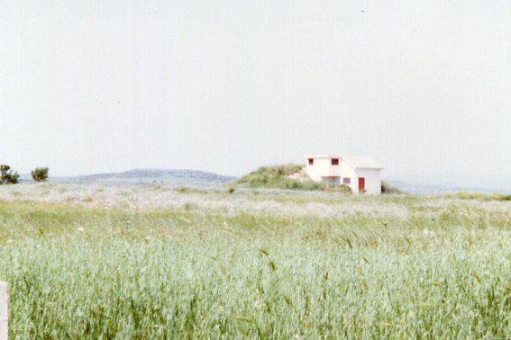 Segnale sul Serbatoio dell'acqua di Usellus sul cocuzzolo ad ovest di Usellus. Centrino di profondità cementato sul pavimento del terrazzino di copertura sullo spigolo nord – ovest.