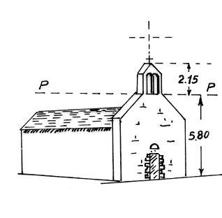 Campanile della chiesetta all'estramo nord-est del Planu Santa Lucia. Asse geometrico del campanile.