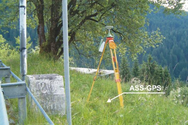 Centrino di superficie in ghisa del Catasto di Trento, cementato in una piazzola a valle della S.S.50 e a circa 1,10 m dalla pietra chilometrica.