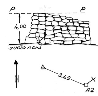 | Materializzazione | Segnale sul nuraghe a nord – ovest di Asuni. Centrino di profondità cementato in un masso del nuraghe. A metri 3,45 a sud – est del segnale esiste una croce in ferro. |