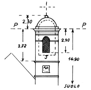 | Materializzazione | Campanile della chiesa parrocchiale di Marrubiu. Asse geometrico del campanile materializzato da un centrino di fondo cementato al centro del pavimento della cella campanaria. |