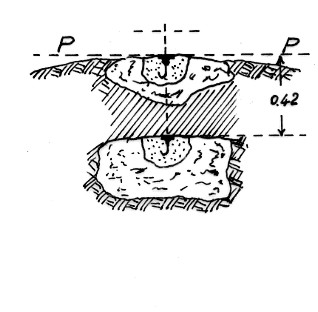 Segnale nella parte più elevata della collina omonima a nord-est di Mogorella. Centrino di profondità cementato su grossa pietra interrata sormontata da altro centrino di profondità cementato al livello del suolo su pietra affiorante.