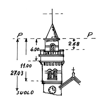 | Materializzazione | Campanile della chiesa parrocchiale di Arborea. Asse geometrico del campanile materializzato dall'asta terminale. |
