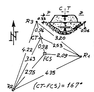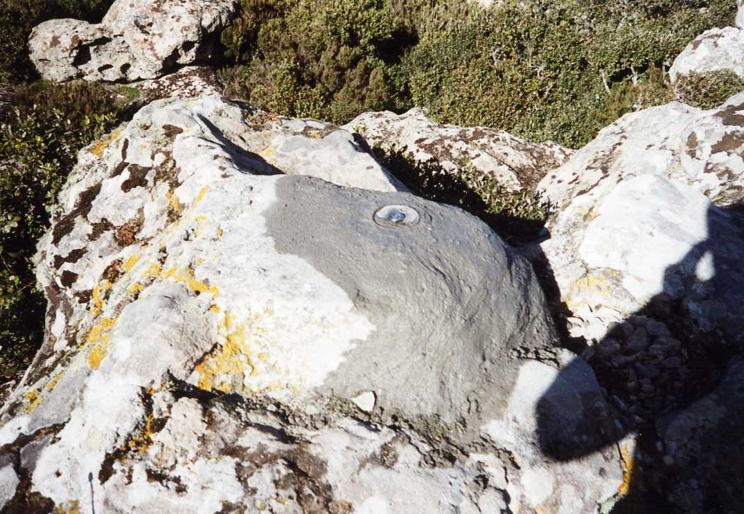 | Materializzazione | Segnale sulla sommità di un picco roccioso. Centrino di superficie affogato in blocco di cemento avente, sottostante ad esso, un centrino di fondo ed uno a forma tronco conica coassiali tra di loro. Riferimenti: tre centrini metallici ed un FCS. |