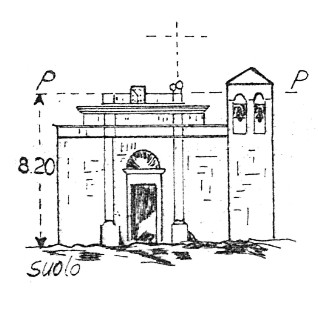 | Materializzazione | Asse del pilastro destro (con altoparlante) alla sommità della porta. |