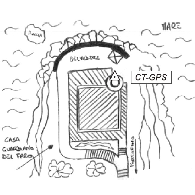 | Materializzazione | Centrino metallico infisso sulla torre del faro di Punta Portofino. |