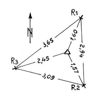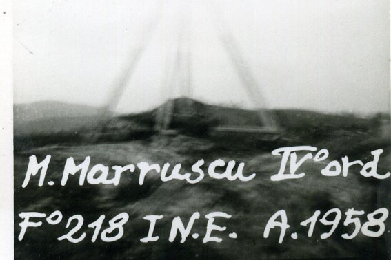 Segnale sulla sommità di un grosso masso di granito presso il primo salto Flumendosa. Centrino di fondo cementato in superficie. Riferimenti: tre croci incise.