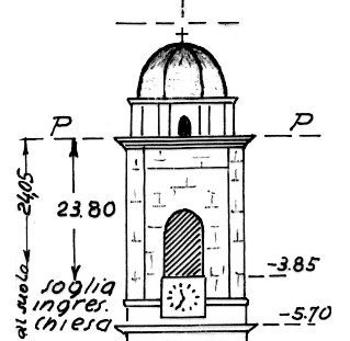 | Materializzazione | Campanile della chiesa parrocchiale. Asse geometrico del campanile. |