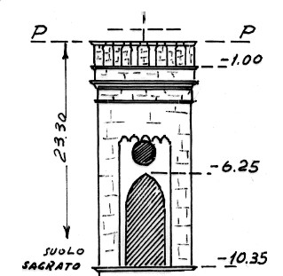| Materializzazione | Campanile della chiesa parrocchiale. Asse geometrico del campanile. |
