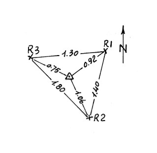| Materializzazione | Segnale sopra il monte roccioso. Croce incisa su roccia. Riferimenti: tre croci incise. |