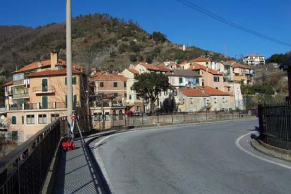 Centrino metallico infisso su marciapiede in asse allo spigolo della Chiesa di San Barlolomeo, tra l'ingresso della chiesa e quello della sacrestia.