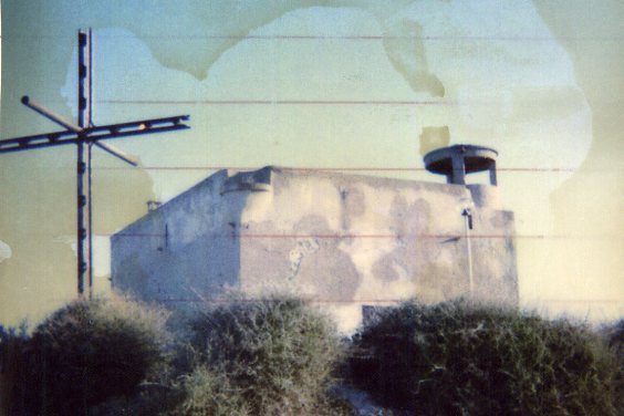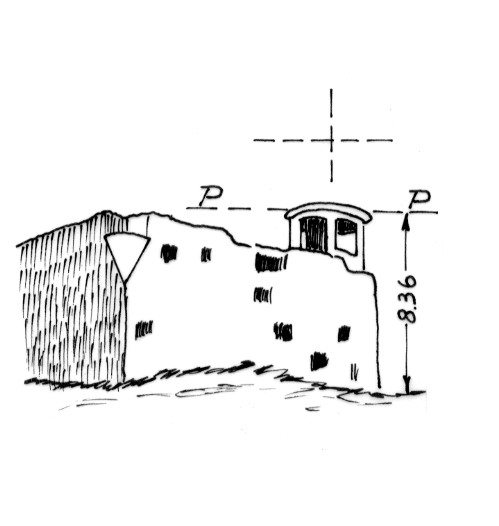 Guardiola sull'altura. Asse geometrico della guardiola materializzato da due centrini cementati, uno alla sommità, ed uno sul piano della terrazza.