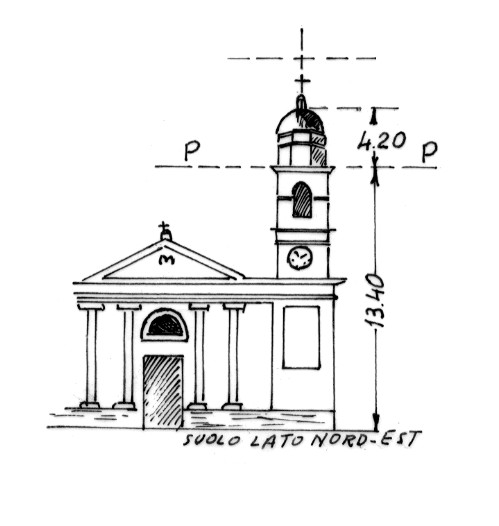 | Materializzazione | Campanile della chiesa parrocchiale. Asse geometrico del campanile. |