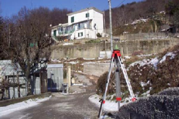Centrino metallico infisso all'stremità inferiore del muro di sostegno nei pressi di un allargamento della sede stradale.
