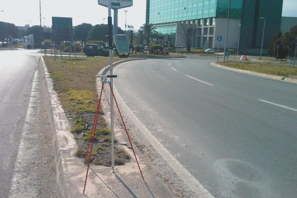 | materializzazione | Centrino metallico infisso su muretto in cemento armato di un'aiuola. |
