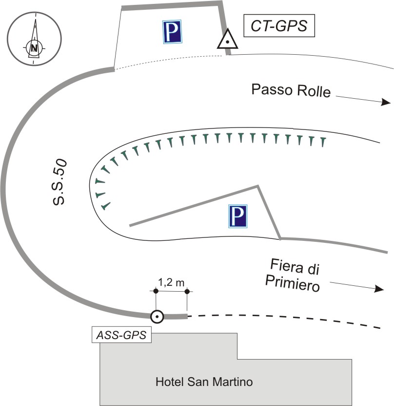 | materializzazione | Centrino in accio inox del tipo "GPS C", infisso sulla sommità del muro perimetrale del parcheggio dell'albergo San Martino. |