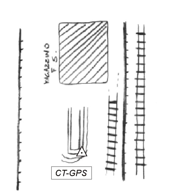 | materializzazione | Centrino metallico infisso su muretto posto di fronte al magazzino della ferrovia. |
